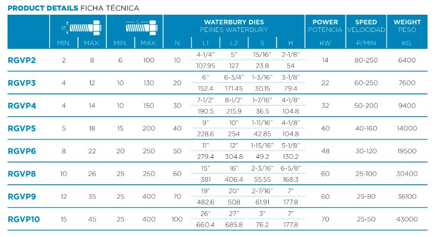 Una gran gama de máquinas que abarcan una enorme variedad de tornillos para todos los mercados. Máquinas de medidas de W10 hasta W100.